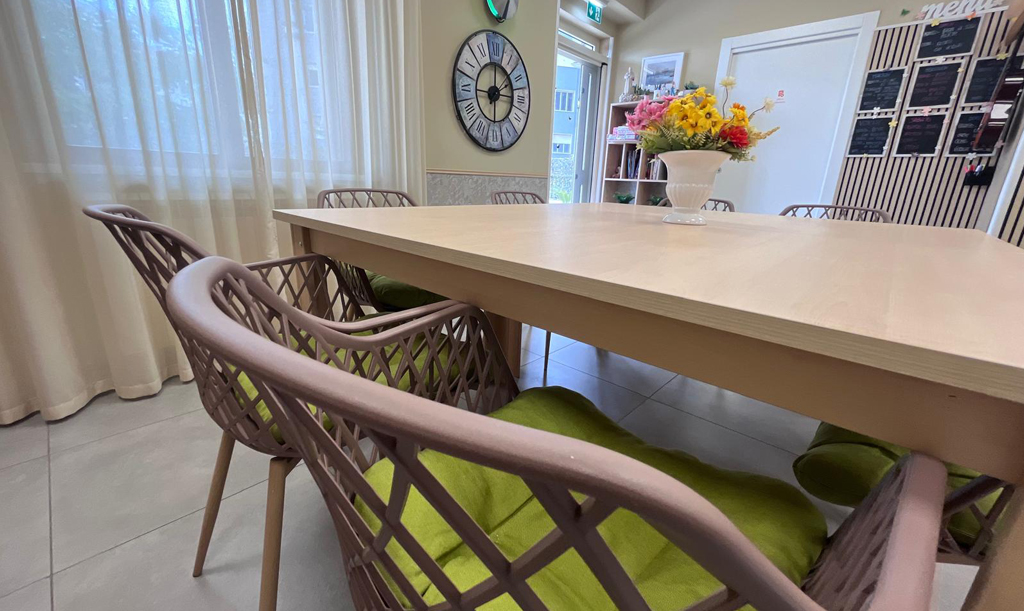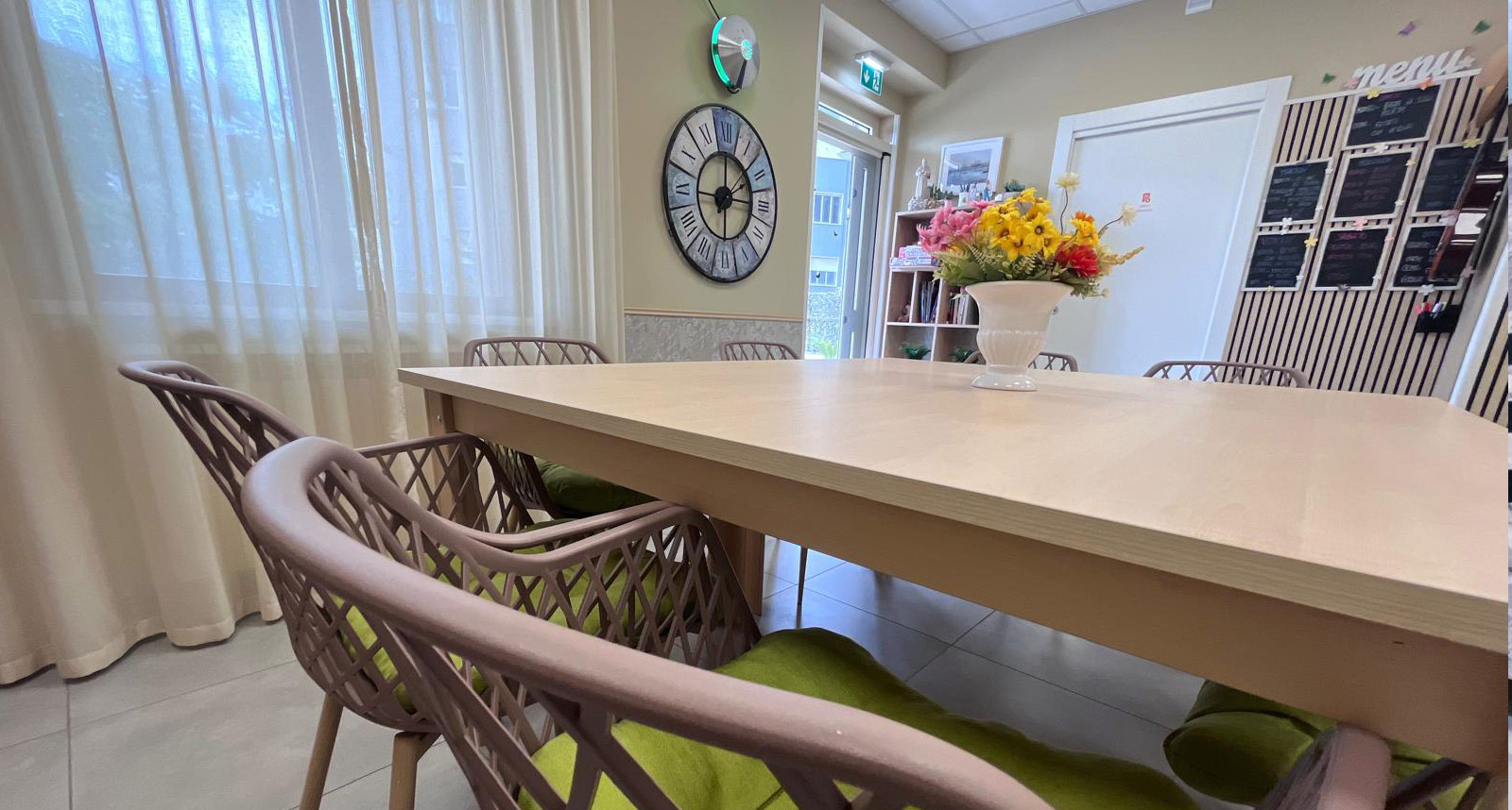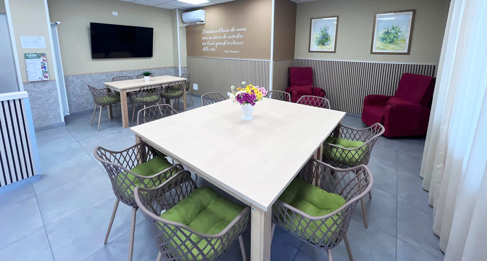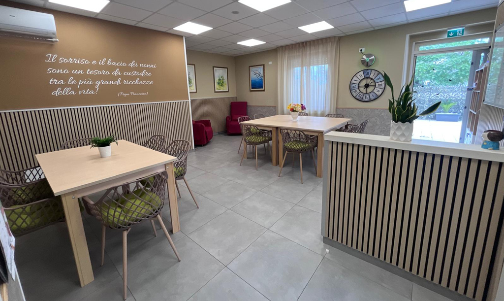 - Camere da letto. Sono presenti 6 camere da letto per gli ospiti, interamente arredate con armadi, comodini, scrittoi con sedie, TV con poltroncine, campanelli d’allarme, telecamere di sorveglianza e ventilatore da soffitto a 3 pale. All’interno di ogni camera è presente una sala da bagno per disabili, la quale è spaziosa, funzionale, fornita di tutti gli ausili e gli accessori necessari, oltreché di un campanello d’allarme.